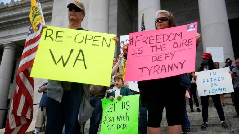 April 2020 saw widespread anti-lockdown protests across America. In Michigan, one of the hardest-hit states, protesters called their Governor a tyrant and compared her to Hitler.  Almost all the protests called for freedom, with slogans like “Give me Liberty or Give Me COVID-19” and “Freedom over fear”. Protestors ranged from those simply wanting to reopen businesses to COVID-deniers and anti-maskers. The general sentiment amongst the protestors was that stay-at-home orders and the closure of businesses were un-American because they did not respect individual choice and liberty and that the economy could not be threatened for public safety.